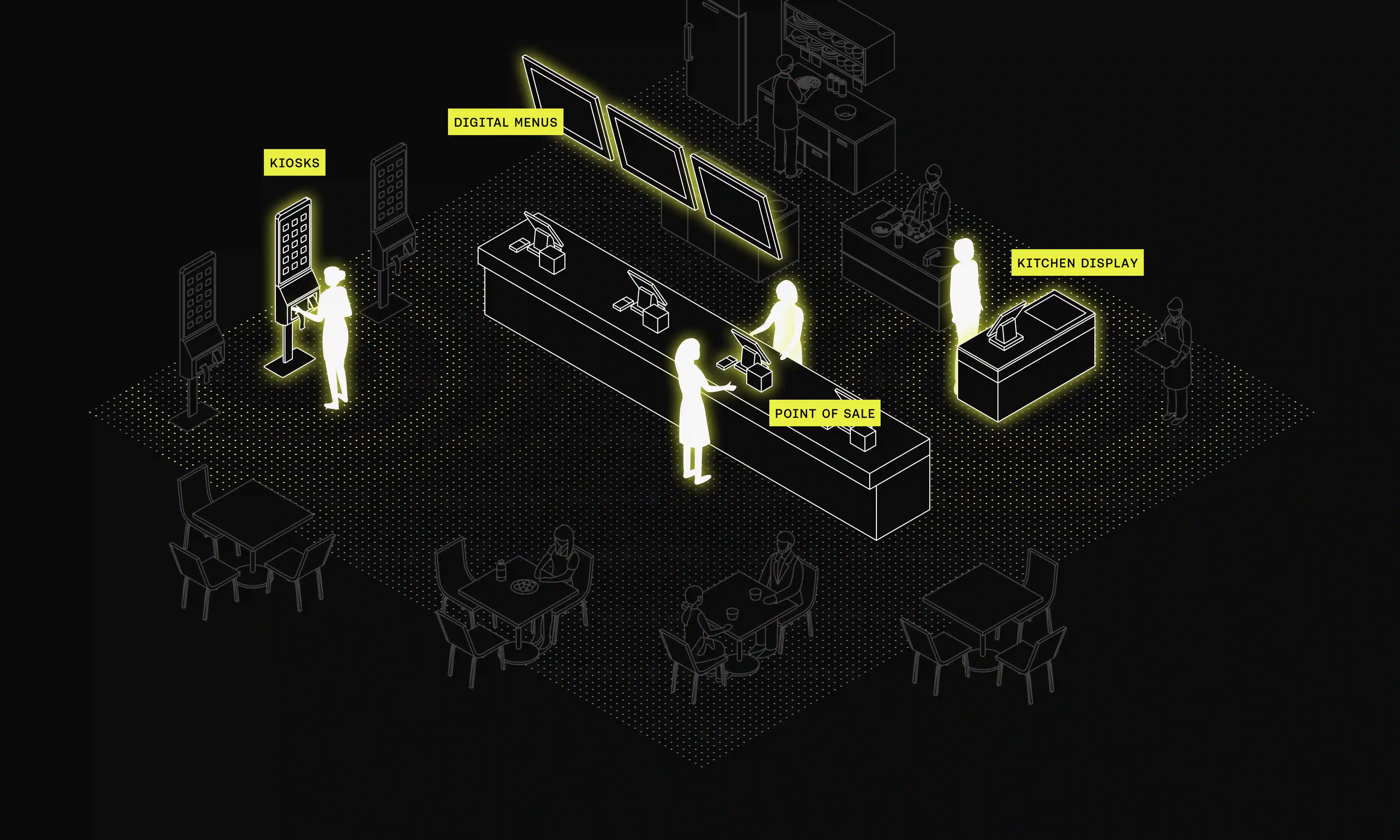 Ditto keeps registers, kiosks, tablets, kiosks, ordering screens, kitchen display systems, and more in sync, up-to-date, and able to transact in any environment.